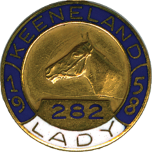 Each year the Keeneland Club has issued an annual pin to its members for entry into the Clubhouse. Since 1968, the pins worn by our members have been designed to honor a person or farm who has played a prominent role in the growth of the Keeneland Association. The subjects represent some of the most influential and successful members of the Thoroughbred industry.