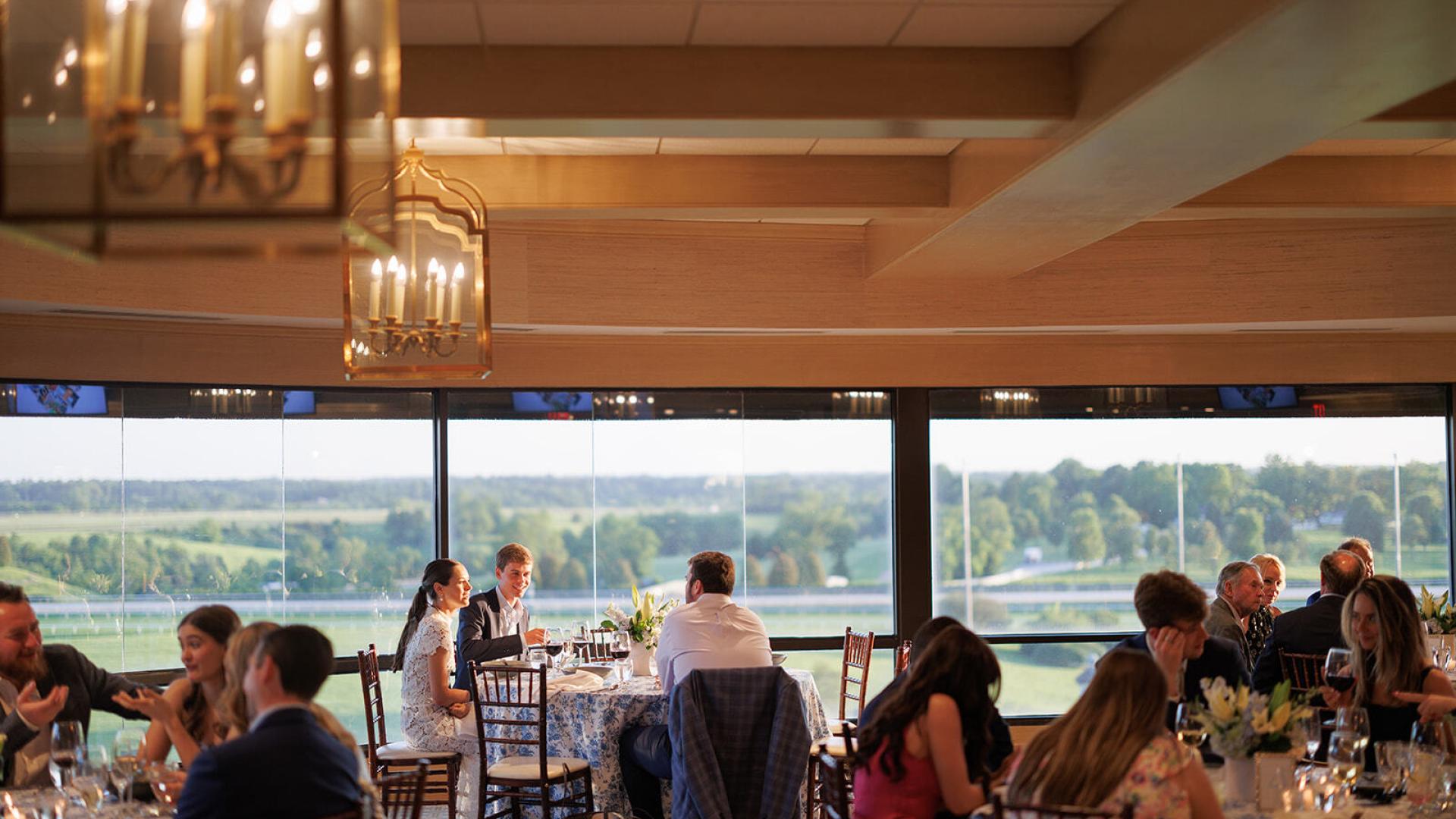 Located on the 5th floor of the historic Grandstand, the Keeneland Room offers an unparalleled, sweeping view of the racetrack.