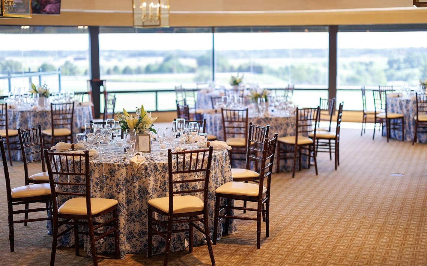 Perched atop the Paddock Building, The Rooftop offers a striking backdrop for unforgettable events. Featuring both a fully enclosed premium indoor dining room and a covered outdoor space anchored by a focal bar. Guests are treated to sweeping views of the Paddock and surrounding grounds. Whether hosting cocktail receptions, private dinners, or milestone celebrations, The Rooftop pairs scenic beauty with polished hospitality for truly elevated occasions.